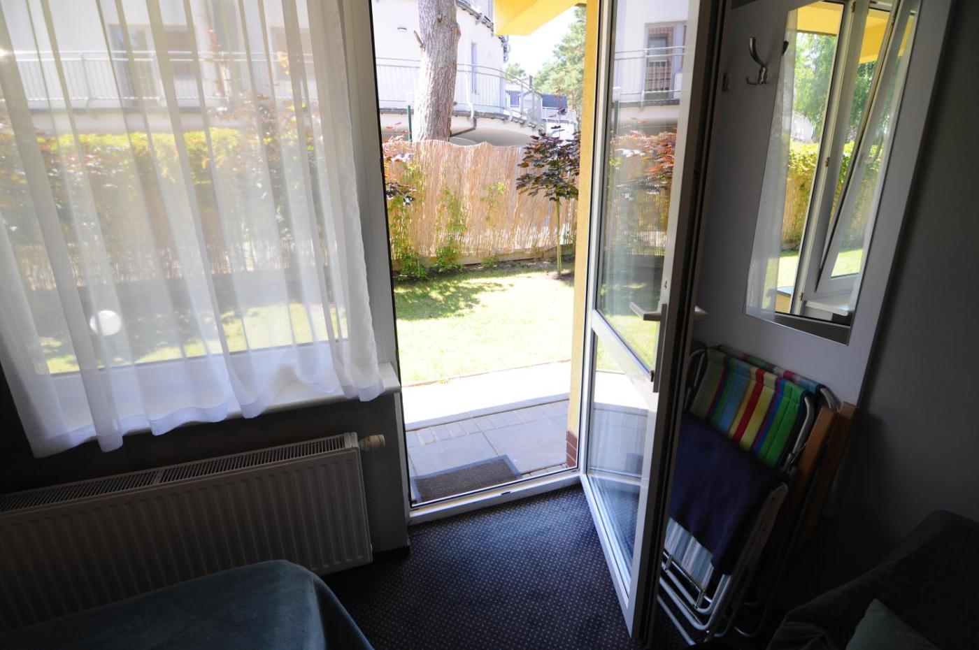 Studio typu Deluxe. Guests will find a stovetop, a refrigerator, kitchenware and a microwave in the well-fitted kitchen. The studio also comes with a barbecue. The studio features a private entrance, a tea and coffee maker, a terrace with garden views as well as a private bathroom boasting a walk-in shower. The unit has 2 beds. Studio - 4 osobowy. Powierzchnia pokoju ok.: 20 mkw. ;